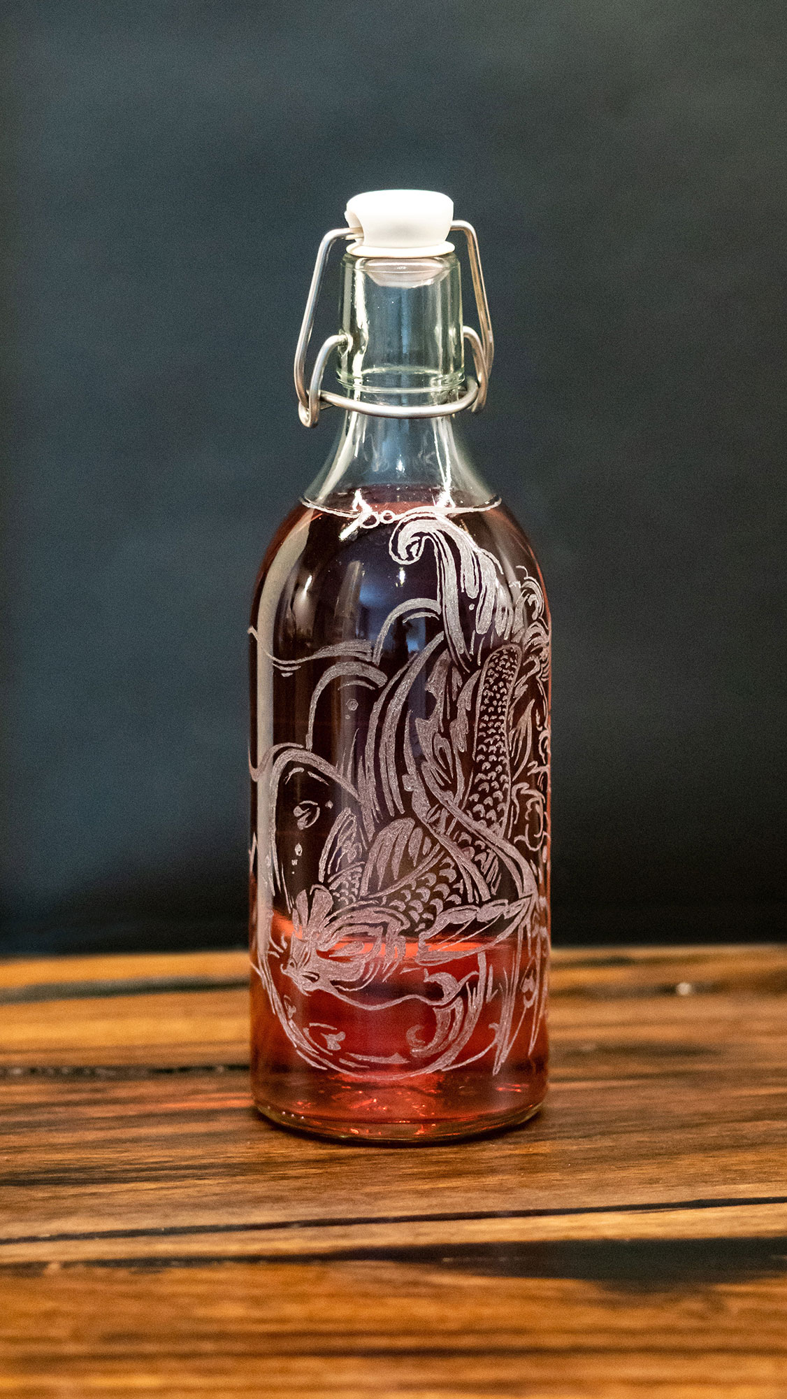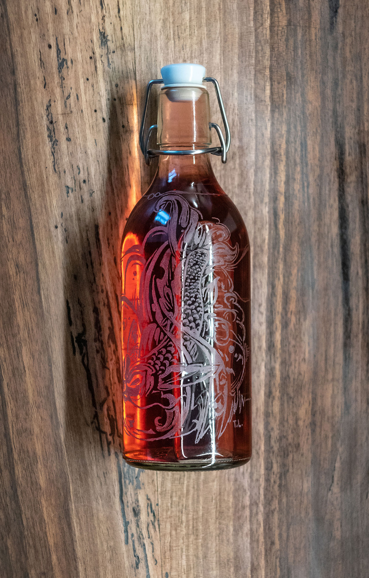 Gestaltung einer Trinkflasche die ich zum Arbeiten benötige, um flüssig zu bleiben. :) Das Design stammt aus dem Internet. Ich habe es angepasst und dann via Glasritzen auf die Flasche übertragen.